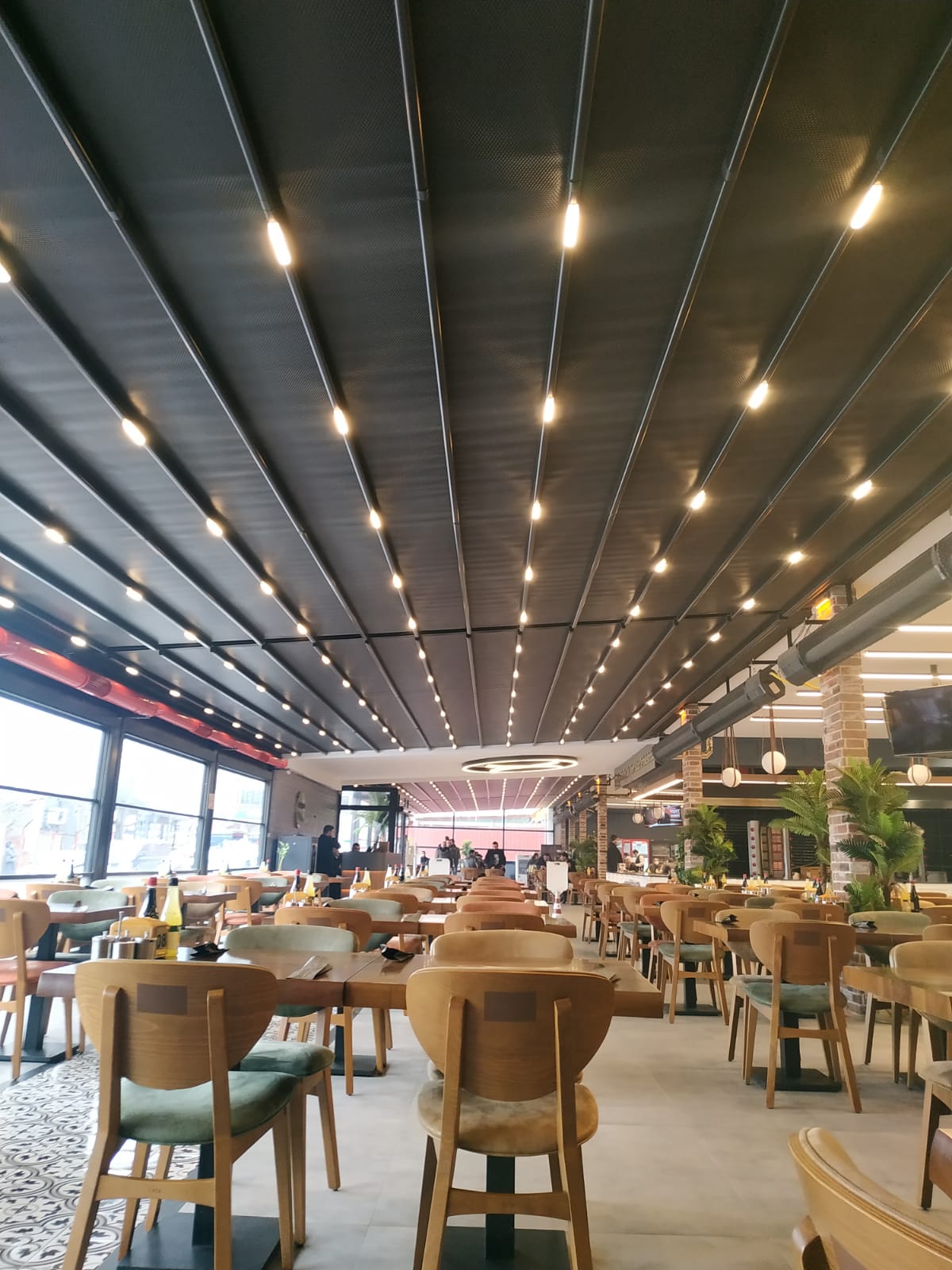 – Üst kısmı motorlu sistemlerle açılıp kapanabilir. LED ışıklar genellikle profillere entegre edilir ve açılıp kapanma sırasında etkilenmez.